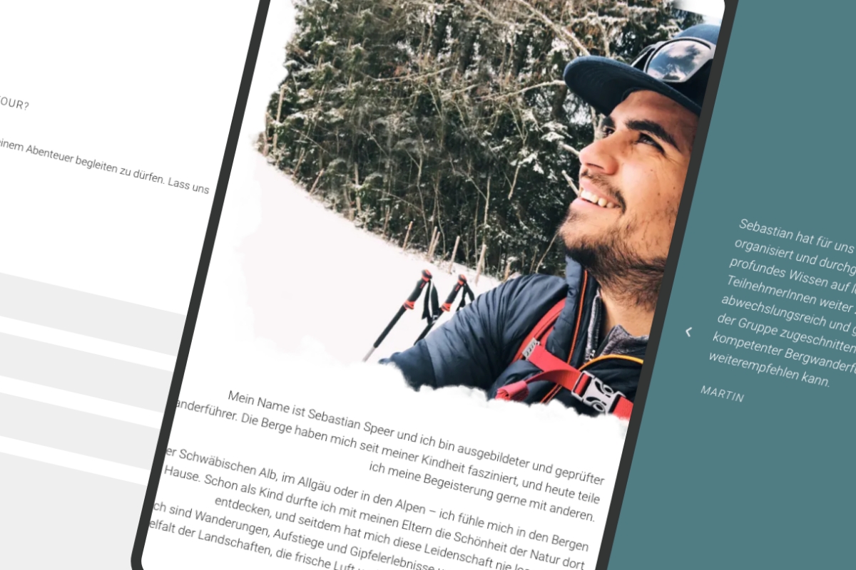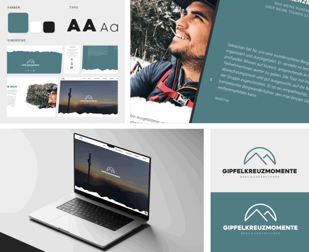 Sebastian Speer ist Bergwanderführer und wohnt im Allgäu. Ich habe Ihn in dem Prozess, seiner Marke Gipfelkreuzmomente eine visuelle Identität zu verleihen, begleitet. Vom Logo, über das Farbkonzept, bis zum maßgeschneiderten Onlineauftritt.